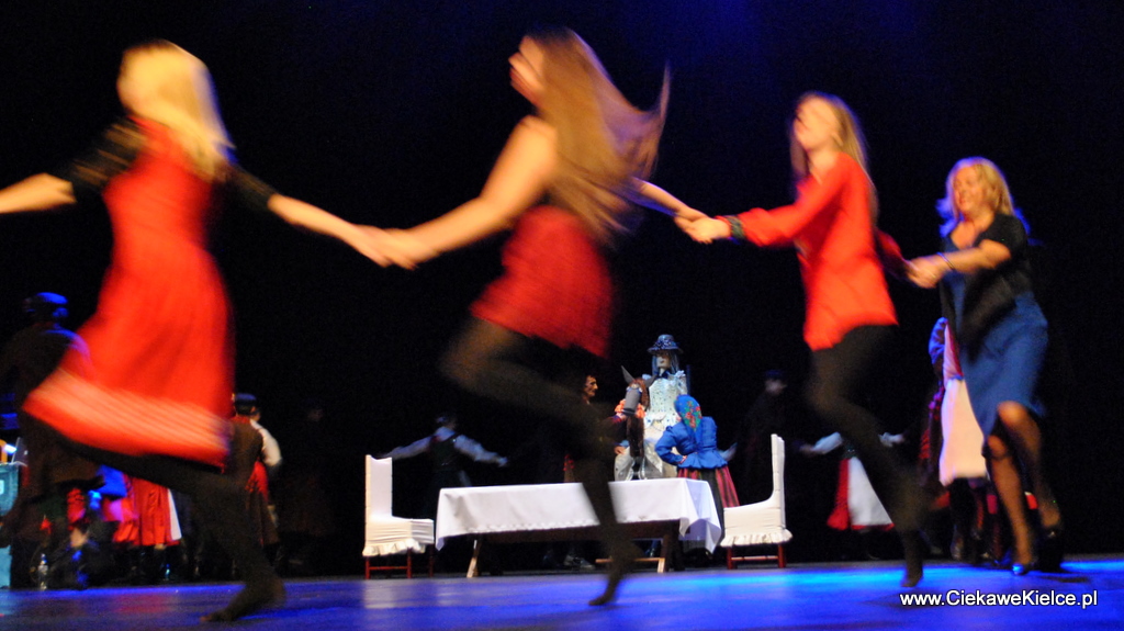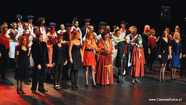 Dziś po raz drugi obejrzałem śpiewogrę (ang. musical), by upewnić się, jak jest dobra. W porównaniu do wczorajszej próby generalnej różnica kolosalna: mikrofony nie zacinały się, zmieniono oświetlenie, poprawiono nagłośnienie (w abecadle sukcesu takich widowisk Autorów i Artystów uzupełniają Akustycy, a ci niestety zawiedli). Fabuły historii regionu świętokrzyskiego od sabatu do ornatu tu nie ogarnę z racji tempa i mnogości wrażeń płynących ze sceny. Tylko hasła: swawolny Sowizdrzał (scyzoryk Roman Słomka, wokalista Mafii) zaprasza na ucztę, dostojny Lech Sulimierski, także jako Jan III Sobieski, seksowna scena pod Bartkiem, dynamiczny balet… partyzancki, po nim świece pacyfikacji. Świetny sabat czarownic formacji Verso i Izabela Trojanowska jako Baśka Rusinowska oraz wróżka tłumacząca sny. Karnawałowy, sandomierski walczyk i finałowe, upojne tango ze scyzorykiem w zębach – na Sienkiewce jak w sakiewce, raz lepiej, raz gorzej…- szalone choć omszałe ! Widownia widowiska „Od sabatu do ornatu” po raz kolejny zgotowała autorom i wykonawcom owację na stojąco.