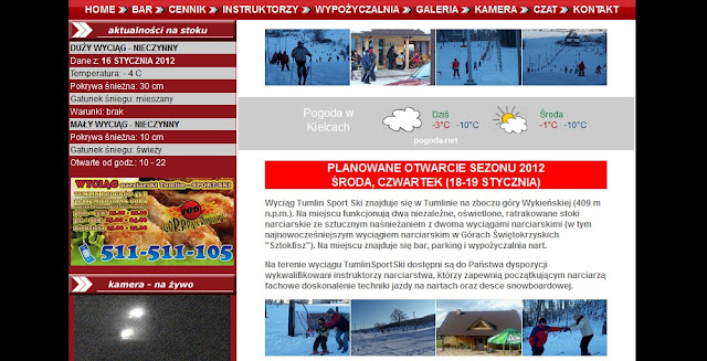 Kielce – Stadion oraz Telegraf,  w Tumlinie, w Niestachowie, w Krajnie, w Bałtowie oraz w Bodzentynie (17 stycznia strona nieczynna). Jak wyglądały te strony na inaugurację sezonu narciarskiego ?