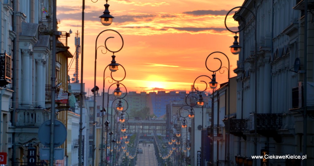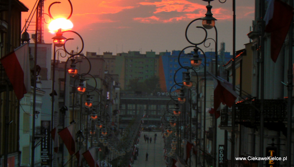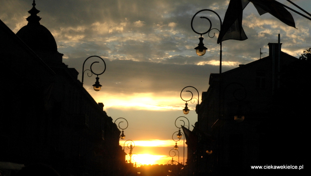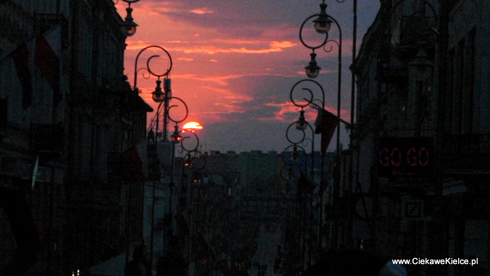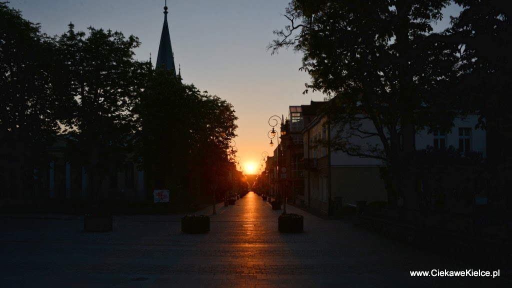 Na początku maja i sierpnia kielecki deptak oferuje kolejną atrakcję- zachody słońca dokładnie na osi ulicy Henryka Sienkiewicza. Niespotykane w innych miastach zjawisko można obserwować zawsze od dnia urodzin patrona deptaka czyli od 5 maja przez pięć kolejnych dni oraz od 5 do 10 sierpnia. Wtedy też Słońce bawi się w chowanego z napisem DWORZEC PKP… |