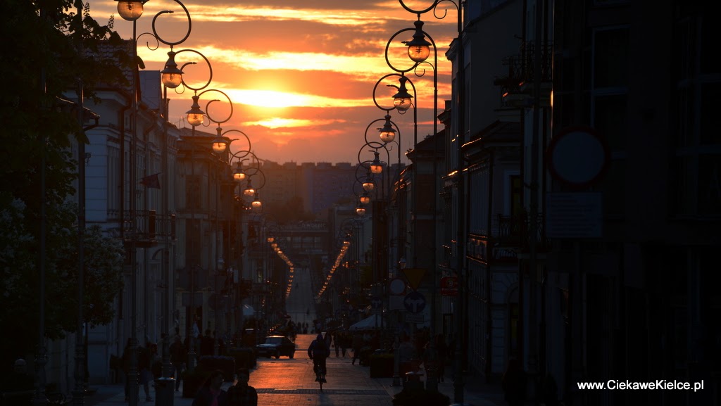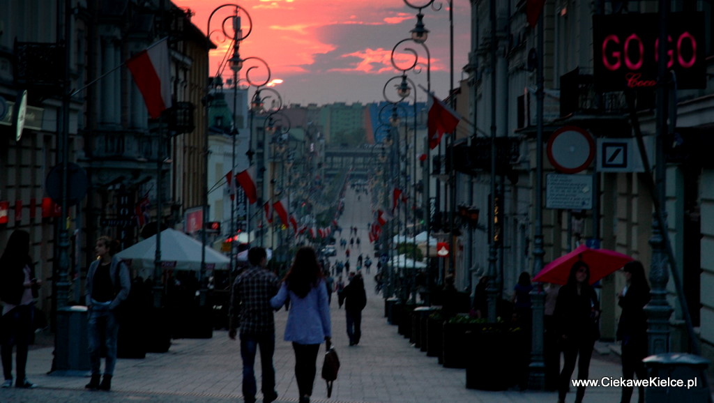 | Zachód słońca nad kieleckim deptakiem 12 maja 2012 r |