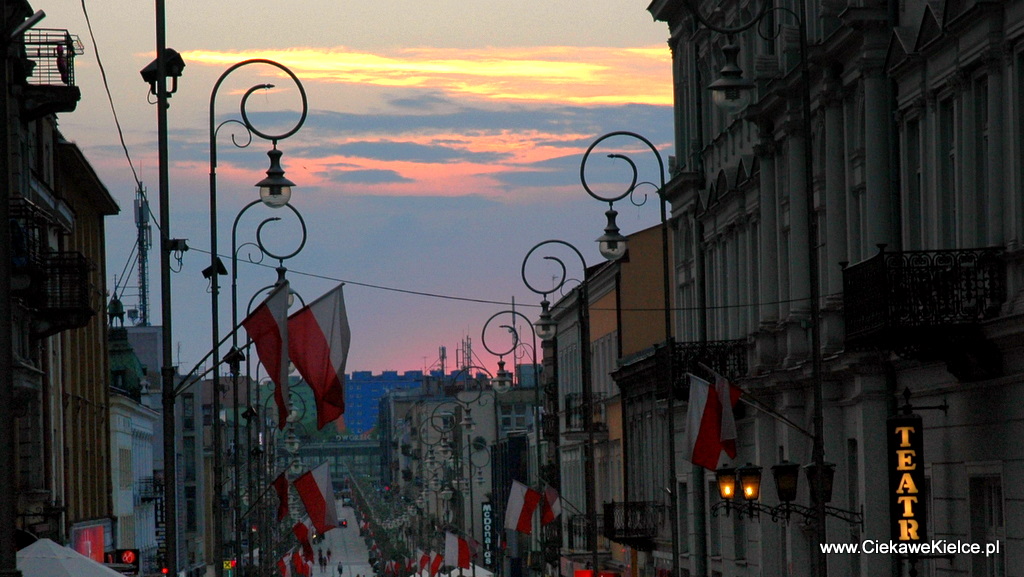 | …kielecki deptak skąpał się w złocistej poświacie, ale… |