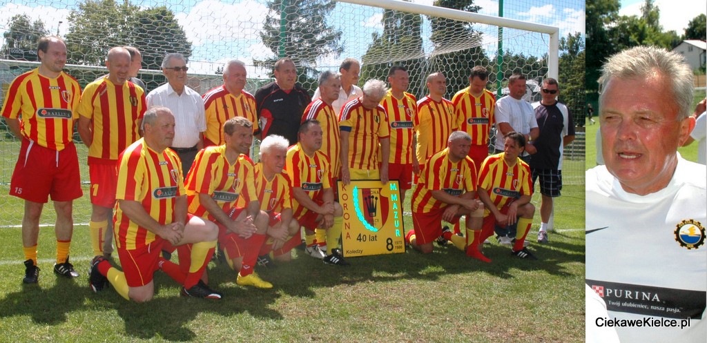 …oraz z cała drużyną oldboyów 40-lecia Korony – z prawej Włodzimierz Gąsior trener 40-lecia Korony, tym razem był trenerem Stali Mielec, z którą grał w najlepszym jej okresie lat 70 m.in. z Grzegorzem Lato, Andrzejem Szarmachem, Janem Domarskim, Henrykiem Kasperczakiem i Henrykiem  Jałochą, który zagrał dziś w Kielcach.