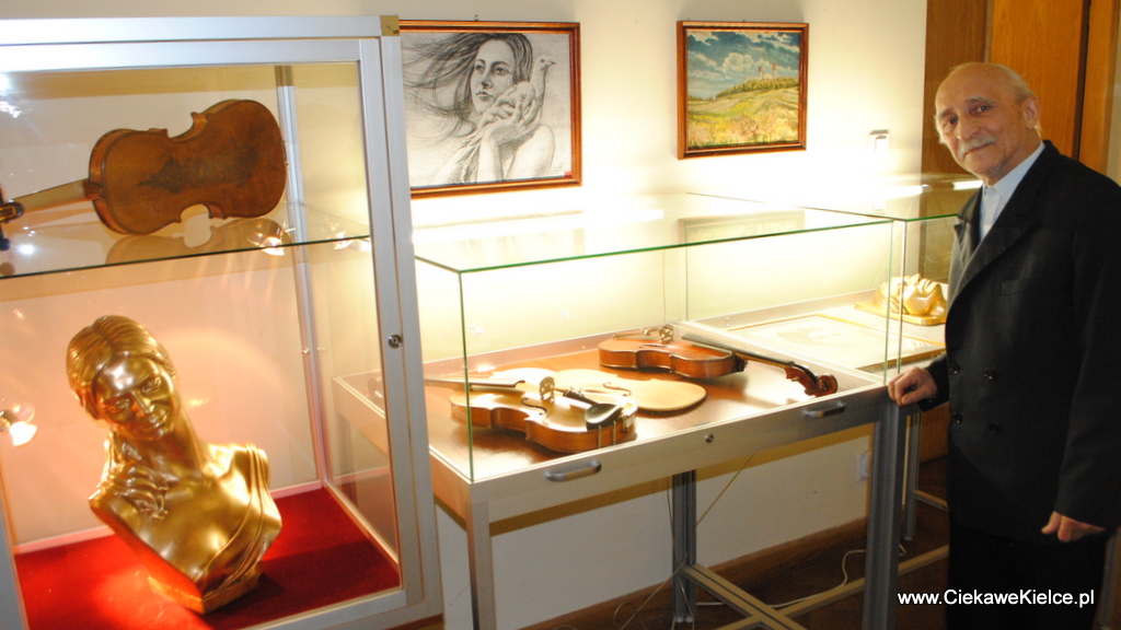 | Eugeniusz Szoła i jego skrzypce na wystawie w Wojewódzkim Domu Kultury |