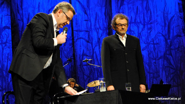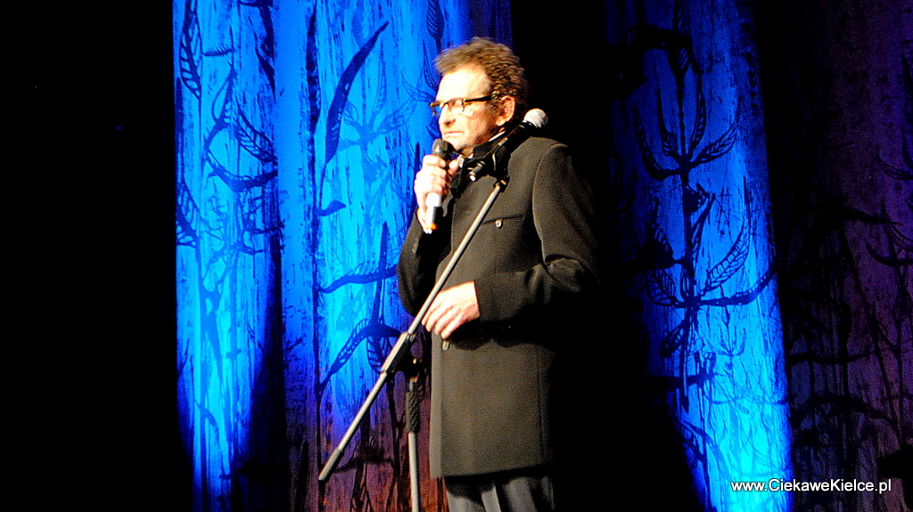Pisać o Andrzeju Poniedzielskim ciężko, bo jego słowa porażają prostotą, precyzją, poetyką, logiką i mimiką. Nie sposób ich przytaczać bez kontekstu (a nagrywać wczorajszego  benefisu nie można było). Fotografować nie jest lżej, jedyną „inną” minę trafiłem po koncercie. Na początku wydawało się, że benefis wisi na włosku. Oto bowiem pod ciężarem czekających go dwóch godzin z tłumem jubileuszowej publiczności pan Andrzej ….wystraszył się….