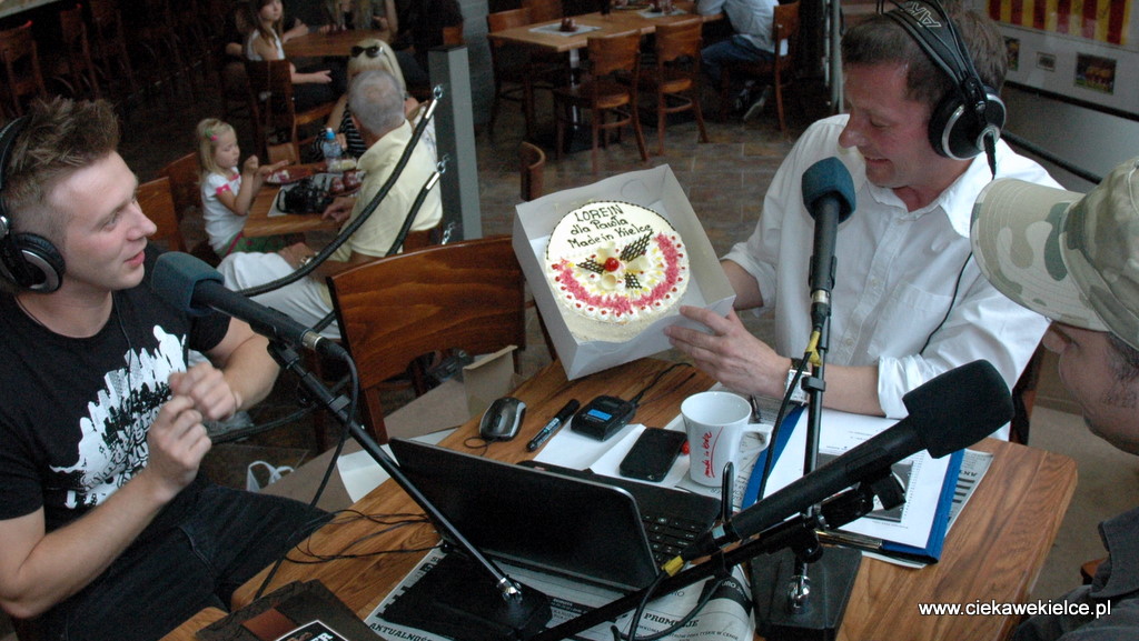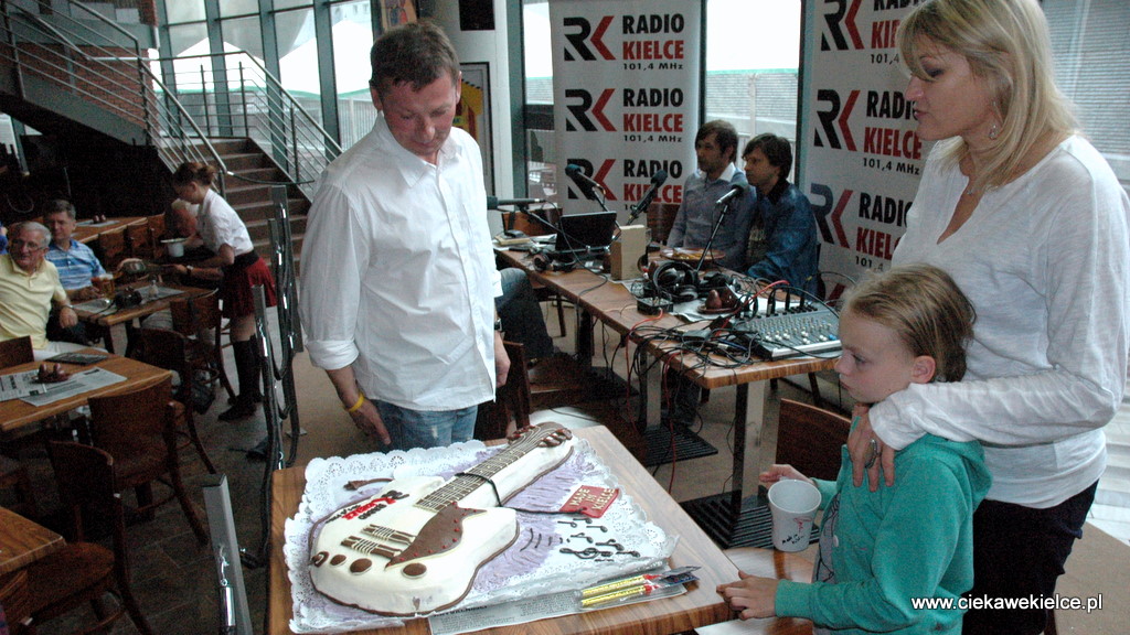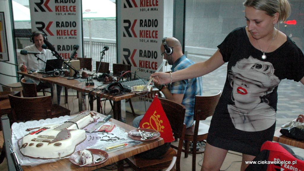 | Jubileuszową 50 audycję Made in Kielce- w asyście szefowej i… gitarowego tortu- Paweł nadawał z galerii Korona |