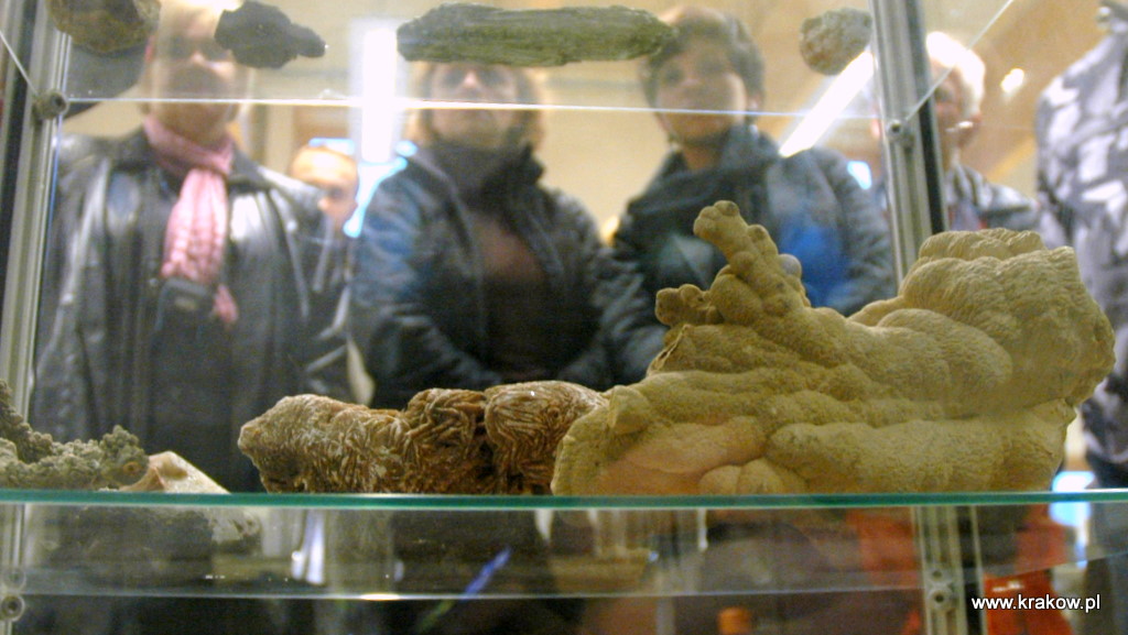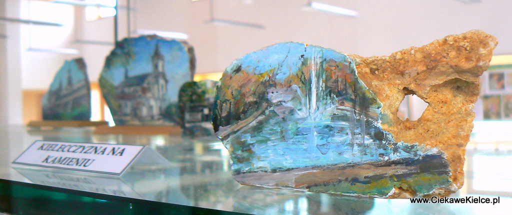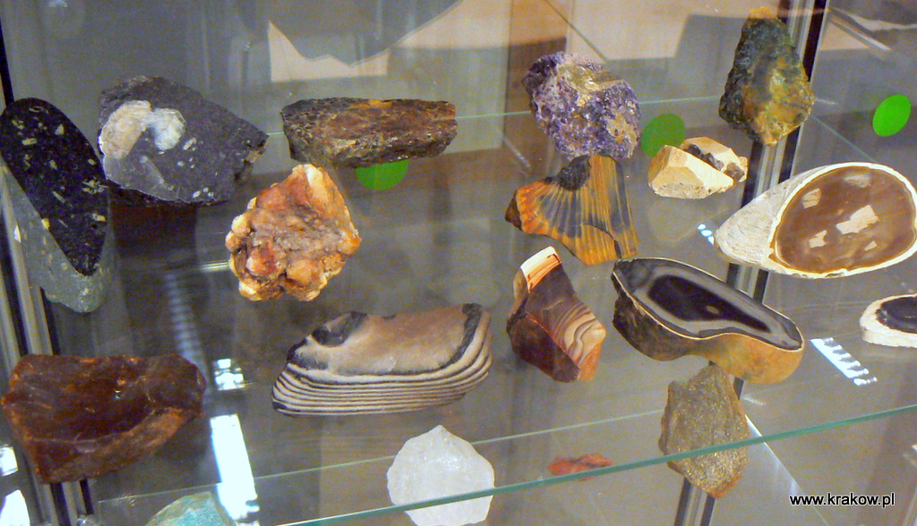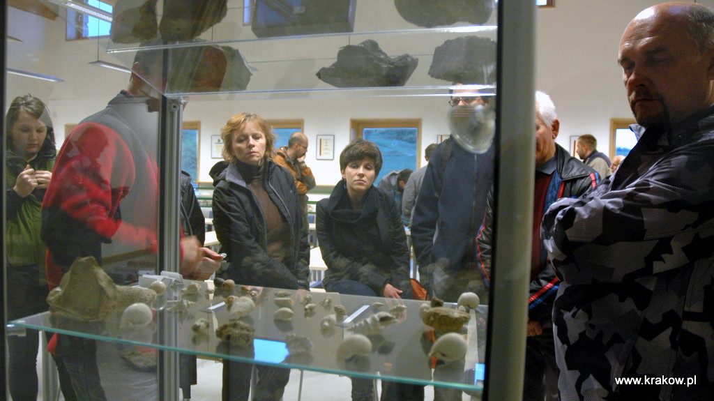 | w Centrum działa Klub Miłośników Geologii (powyżej gablota poświęcona patronowi- Janowi Rafałowi Kamińskiemu) |