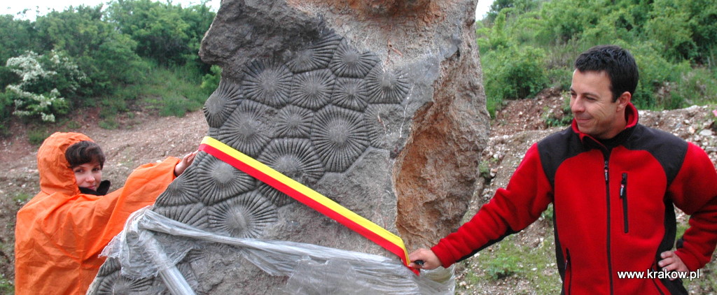 Przed tygodniem Klub Górski PTTK nieoficjalnie odsłonił pomnik kolonii korali dewońskich przy Centrum Geoedukacji – szarfa w kolorach Kielc oznacza wydarzenie najwyższej rangi ! |