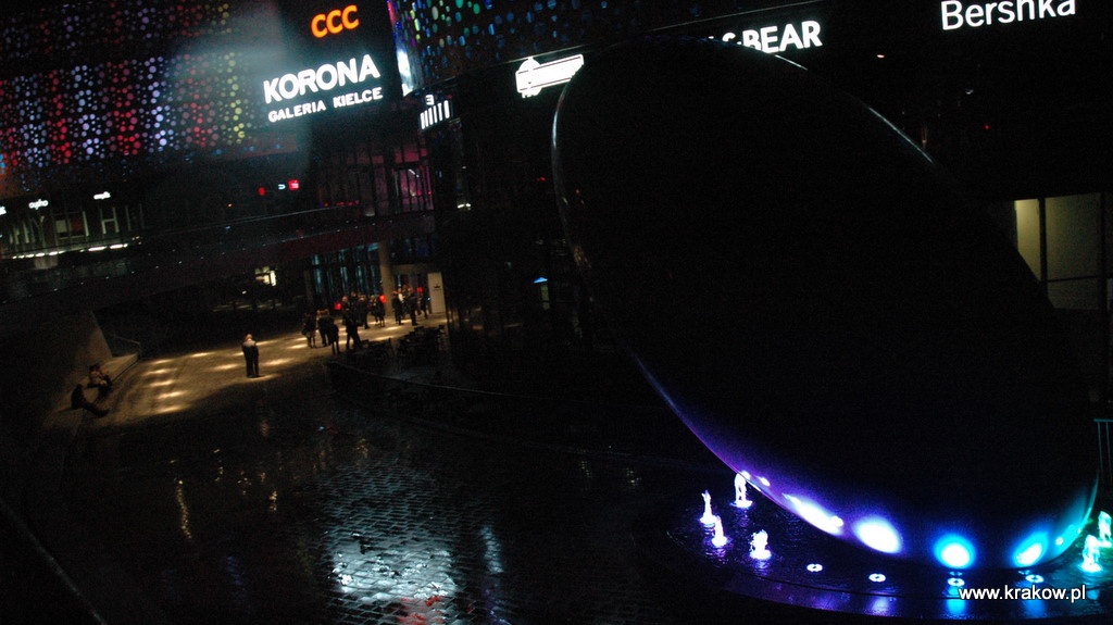 | Oświetlenie potężnego jaja przy wejściu też zmienia się jak w kalejdoskopie |