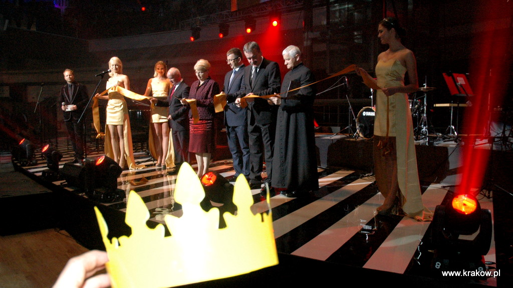 | Postanowiłem nieco ubarwić uroczystość naprędce przygotowaną koroną z herbu Kielc, oświetleniowcy włączyli żółte światła… |