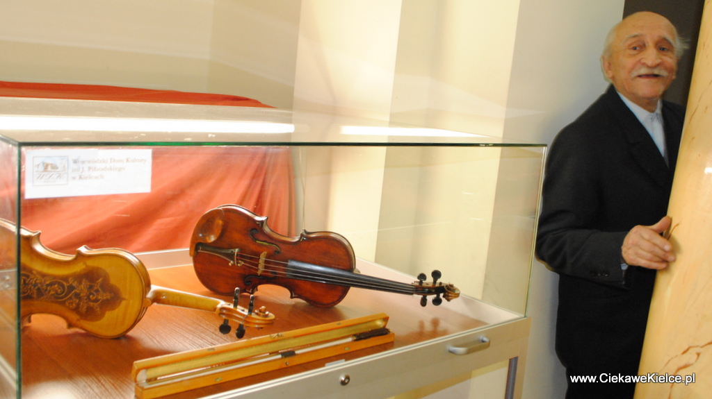 | Eugeniusz Szoła i jego skrzypce na wystawie w Wojewódzkim Domu Kultury |