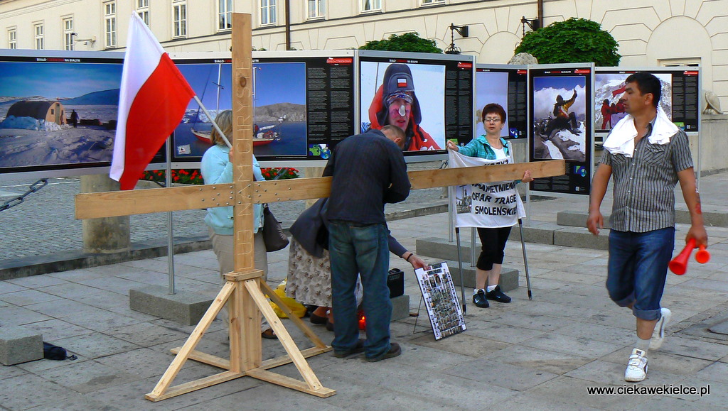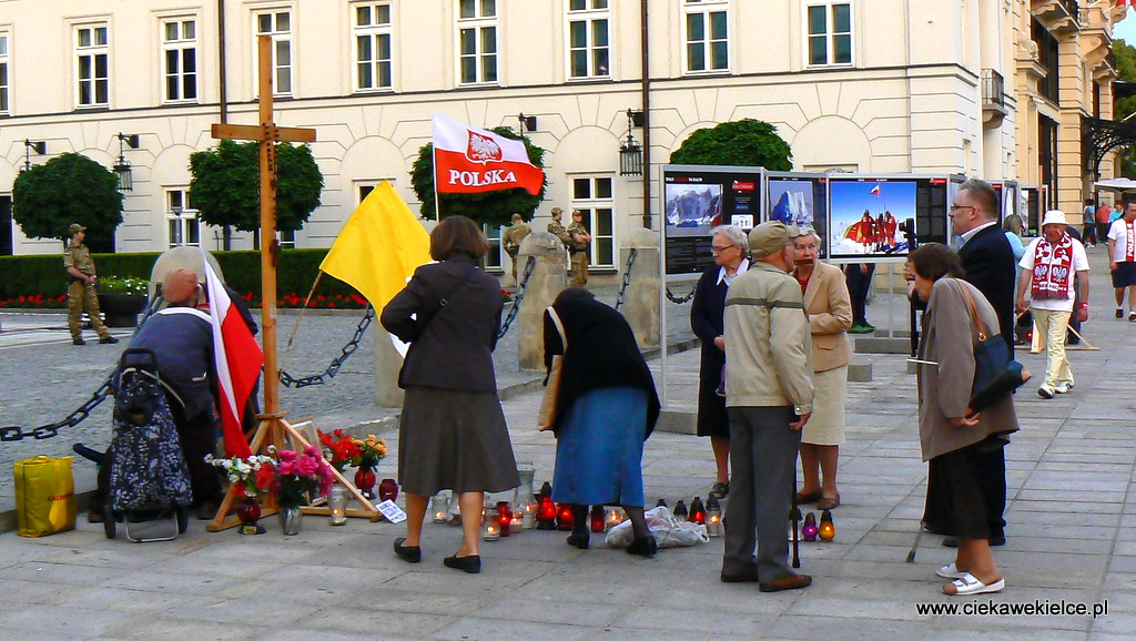 | Pół godziny wcześniej przed pałacem prezydenckim była tylko wystawa osiągnięć polskich himalaistów, gdy wracałem ze starówki pojawiły się dwa nowe krzyże i znicze… |