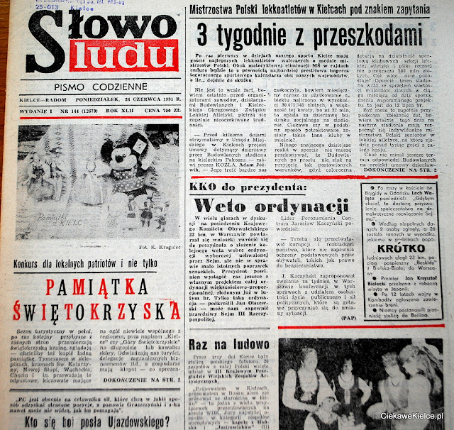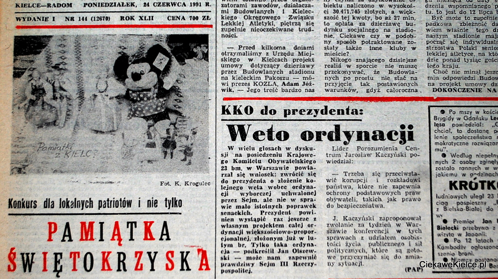 naszą narodową kulturą Cepelii, obok małych figurek Krakowiaków i Górali pojawiła się … duża Myszka Miki. Redakcja ogłosiła wtedy konkurs na pamiątkę świętokrzyską, który trwa … do dziś. Nie pojawiły się bowiem wzory, z których lokalni patrioci mogliby być dumni. Jeśli takie powstaną, to bardzo chętnie opublikuję ich zdjęcia wraz z namiarami na producenta- zbyt gwarantowany !